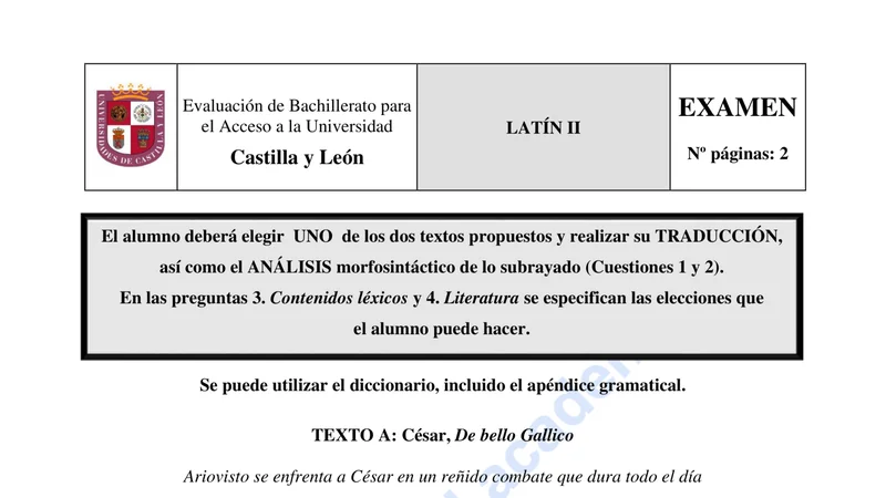 Reservar clase gratis →Examen de Latín II selectividad Castilla y León (Extraordinaria 2021)