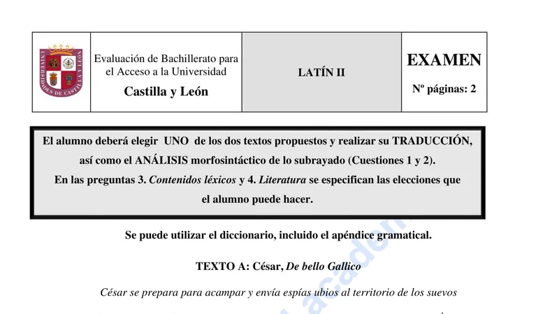 Reservar clase gratis →Examen de Latín II selectividad Castilla y León (Ordinaria 2021)