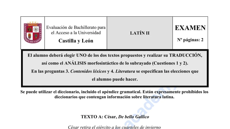 Reservar clase gratis →Examen de Latín II selectividad Castilla y León (Ordinaria 2022)