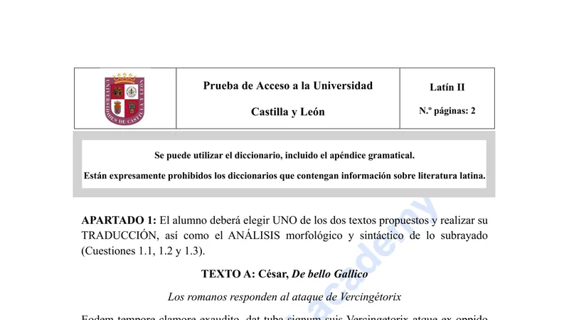 Reservar clase gratis →Examen de Latín II selectividad Castilla y León (Extraordinaria 2025)