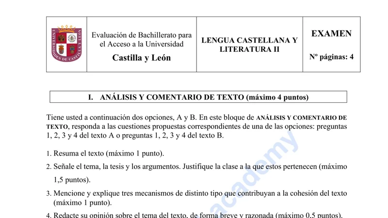 Reservar clase gratis →Examen de Lengua Castellana selectividad Castilla y León (Extraordinaria 2022)