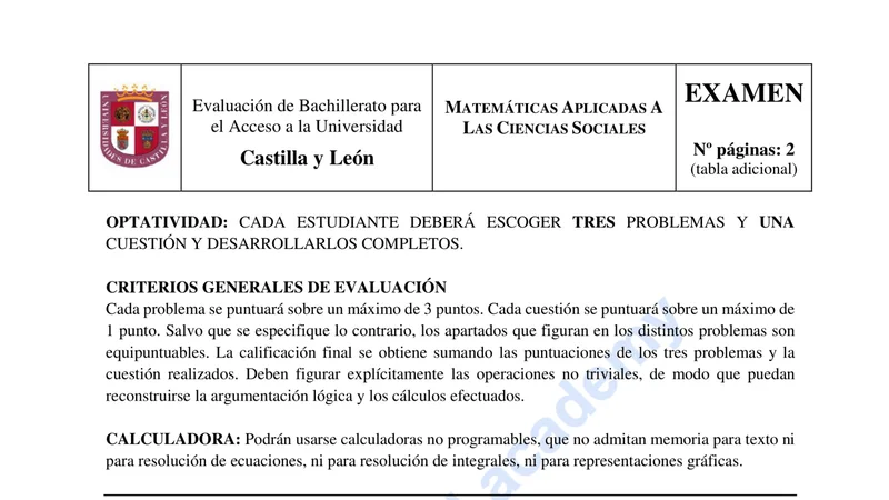 Examen PAU Matemáticas CCSS selectividad Castilla y León — Ordinaria 2022