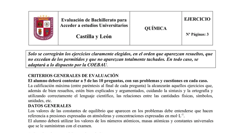 Reservar clase gratis →Examen de Química selectividad Castilla y León (Extraordinaria 2020)