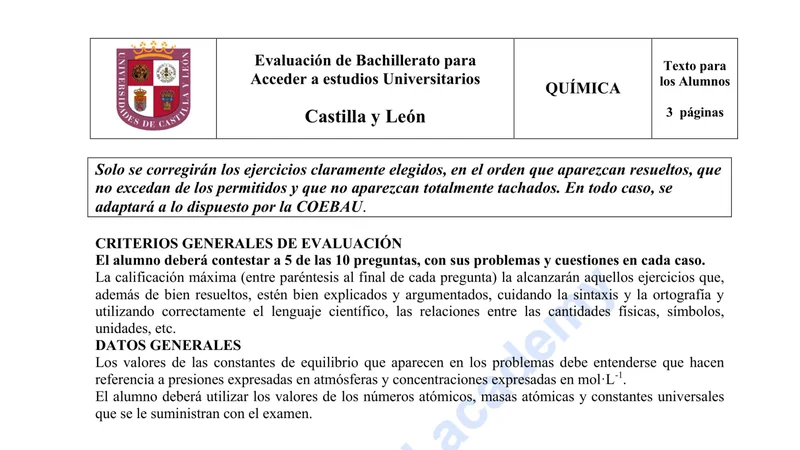 Reservar clase gratis →Examen de Química selectividad Castilla y León (Extraordinaria 2021)