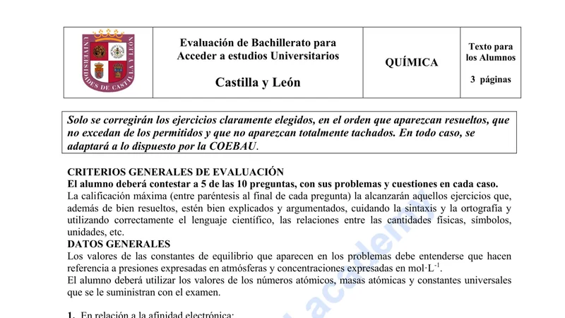Reservar clase gratis →Examen de Química selectividad Castilla y León (Ordinaria 2021)