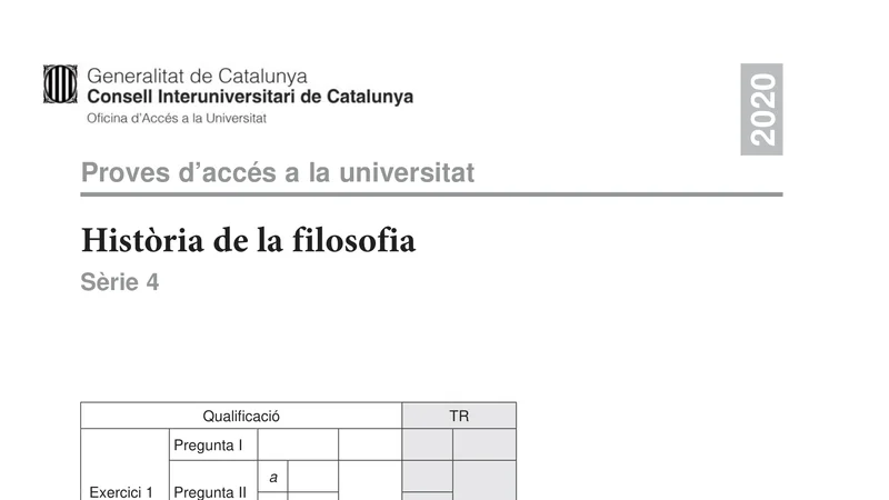 Examen de Historia de la Filosofía selectividad Cataluña — Extraordinaria 2020