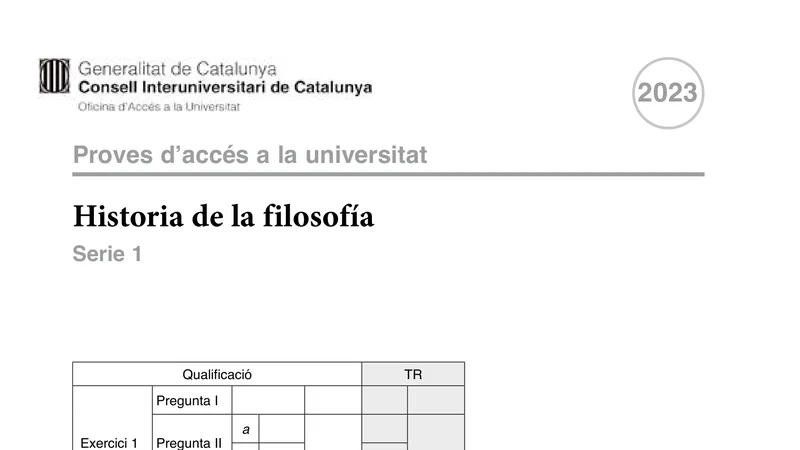 Examen de Historia de la Filosofía selectividad Cataluña — Ordinaria 2023