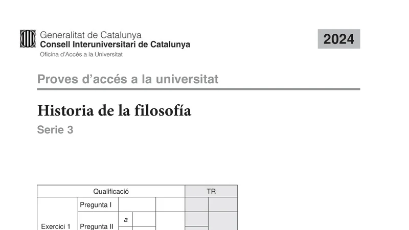 Examen de Historia de la Filosofía selectividad Cataluña — Extraordinaria 2024