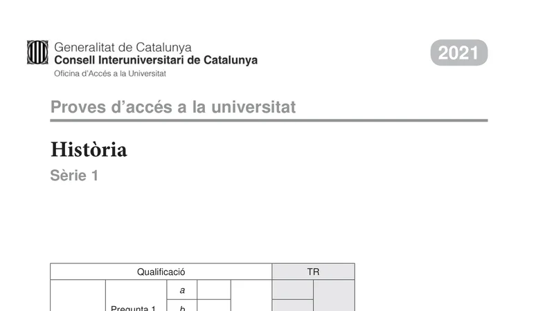Examen PAU Historia de España selectividad Cataluña — Extraordinaria 2021