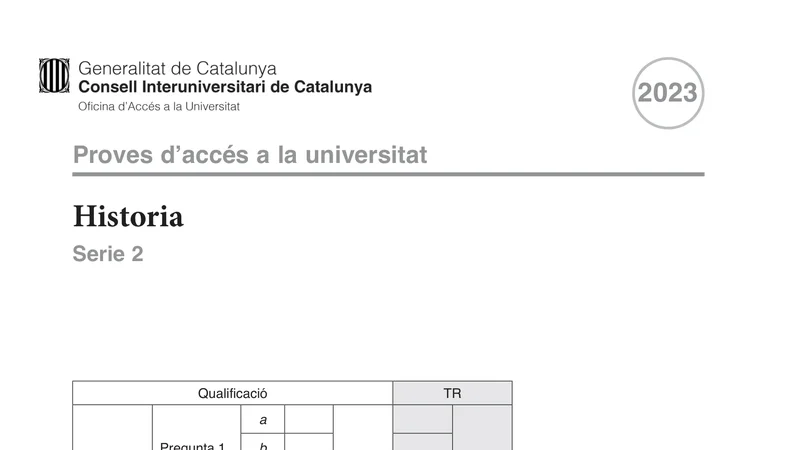 Examen PAU Historia de España selectividad Cataluña — Extraordinaria 2023