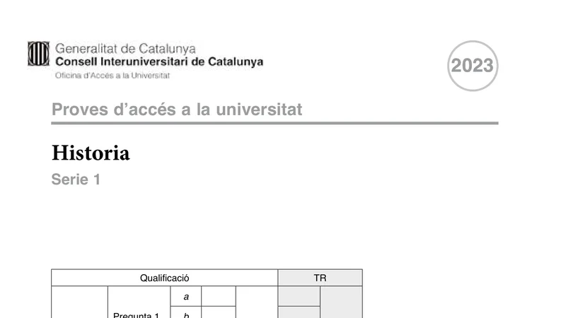Examen PAU Historia de España selectividad Cataluña — Ordinaria 2023