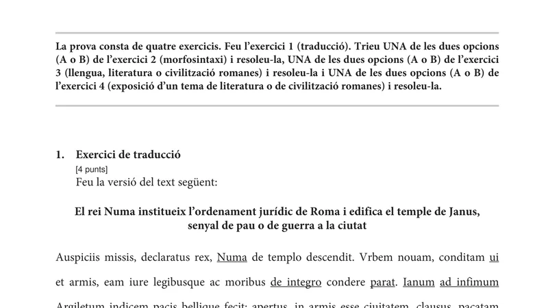 Reservar clase gratis →Examen de Latín II selectividad Cataluña (Ordinaria 2021)