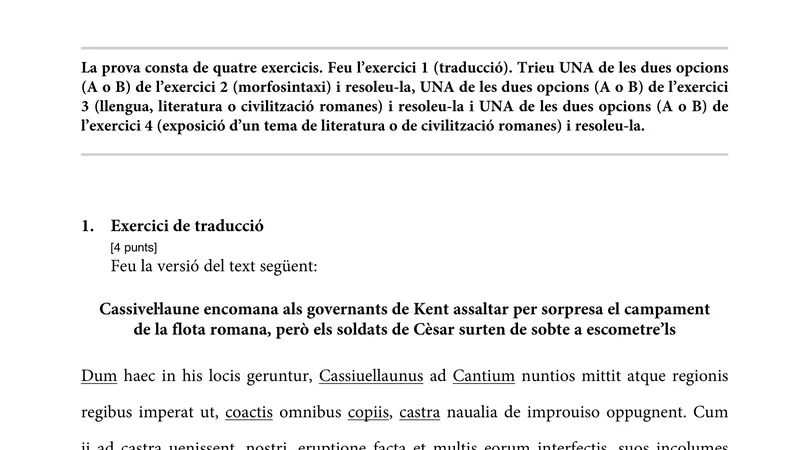 Reservar clase gratis →Examen de Latín II selectividad Cataluña (Extraordinaria 2022)