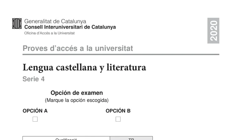 Examen PAU Lengua Castellana selectividad Cataluña — Extraordinaria 2020