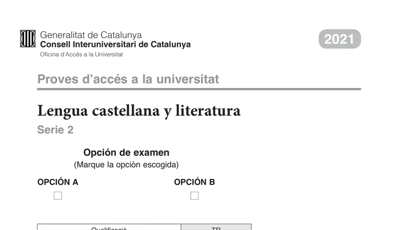 Examen PAU Lengua Castellana selectividad Cataluña — Ordinaria 2021