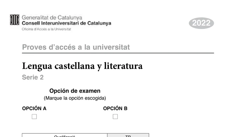 Examen PAU Lengua Castellana selectividad Cataluña — Ordinaria 2022