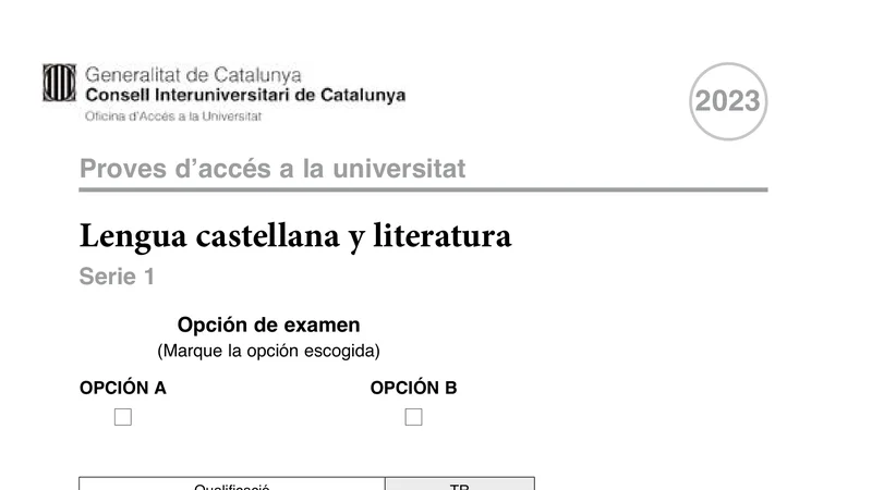 Examen PAU Lengua Castellana selectividad Cataluña — Ordinaria 2023