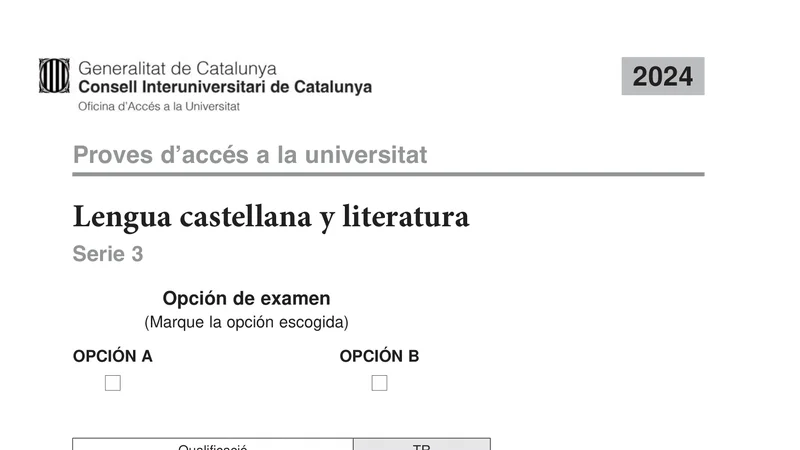 Reservar clase gratis →Examen de Lengua Castellana selectividad Cataluña (Extraordinaria 2024)