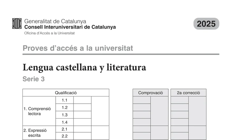Reservar clase gratis →Examen de Lengua Castellana selectividad Cataluña (Extraordinaria 2025)