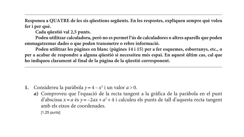 Examen PAU Matemáticas II selectividad Cataluña — Ordinaria 2021