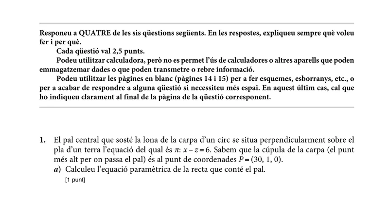 Reservar clase gratis →Examen de Matemáticas II selectividad Cataluña (Extraordinaria 2022)