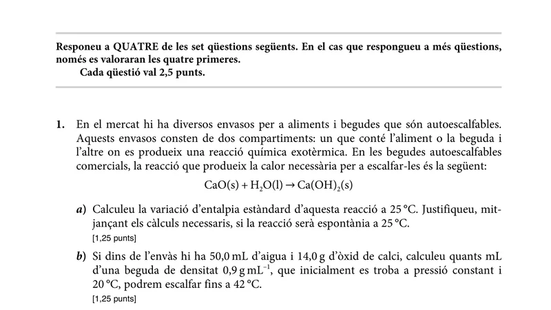 Reservar clase gratis →Examen de Química selectividad Cataluña (Extraordinaria 2022)