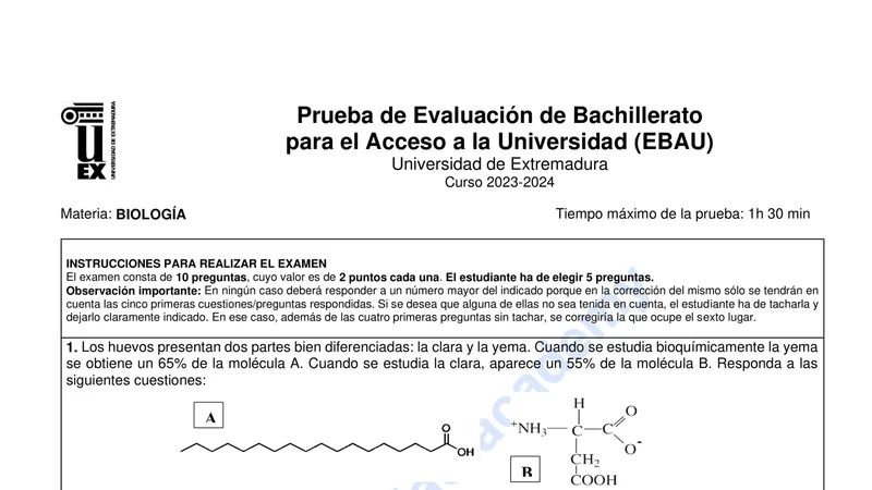 Reservar clase gratis →Examen de Biología selectividad Extremadura (Extraordinaria 2024)
