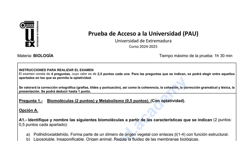 Reservar clase gratis →Examen de Biología selectividad Extremadura (Extraordinaria 2025)