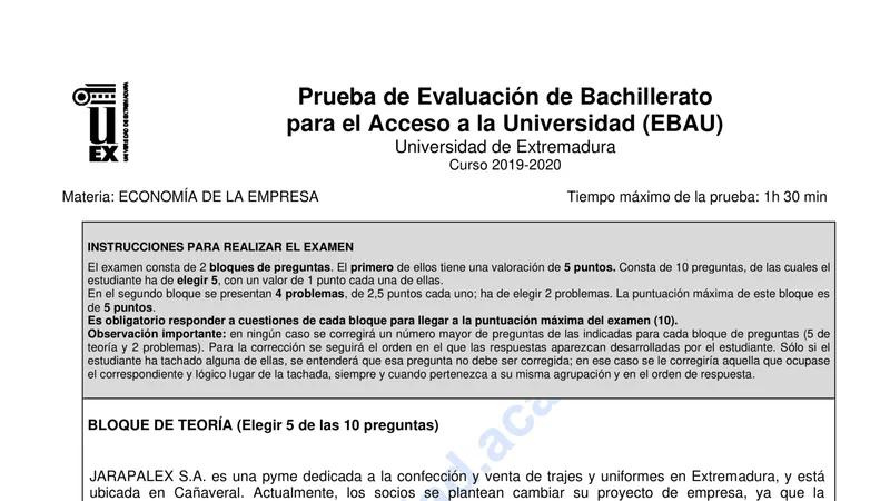 Reservar clase gratis →Examen de Economía selectividad Extremadura (Ordinaria 2020)