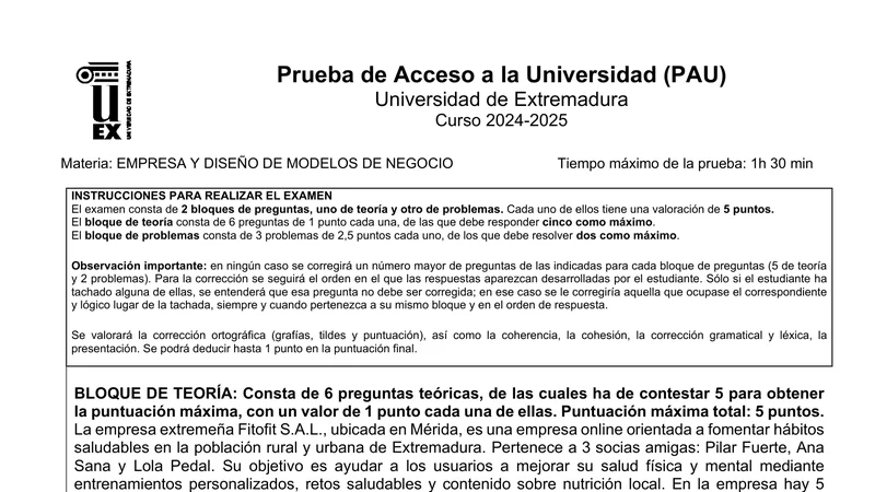Enunciado oficial del examen de Economía de la convocatoria ordinaria de 2025 de la EBAU/PAU de Extremadura. PDF de 0.2 MB. Descarga gratuita y sin registro. ¿Preparando la selectividad? Calcula tu nota estimada o consulta la guía completa de selectividad 2026. Encuentra todos los exámenes de Economía en Extremadura o explora las 17 comunidades autónomas.