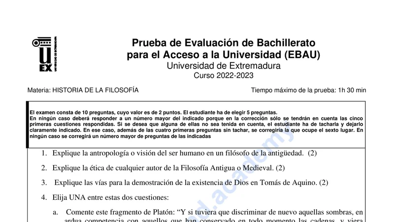 Examen de Historia de la Filosofía selectividad Extremadura — Extraordinaria 2023