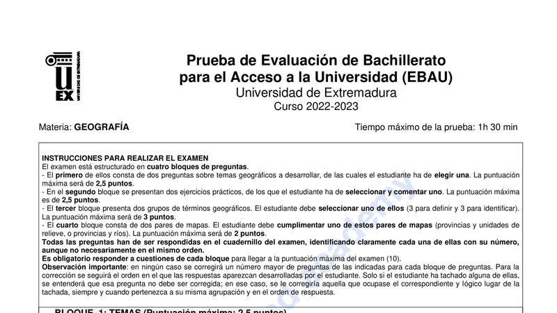 Examen PAU Geografía selectividad Extremadura — Ordinaria 2023