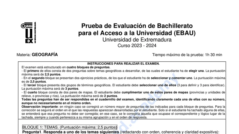 Reservar clase gratis →Examen de Geografía selectividad Extremadura (Extraordinaria 2024)