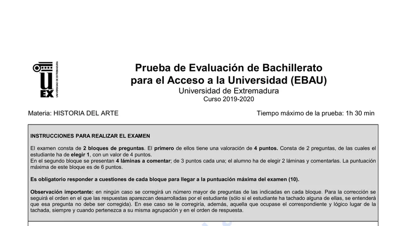 Reservar clase gratis →Examen de Historia del Arte selectividad Extremadura (Ordinaria 2020)