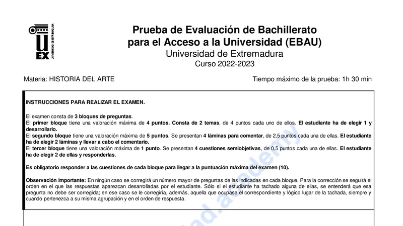 Reservar clase gratis →Examen de Historia del Arte selectividad Extremadura (Extraordinaria 2023)