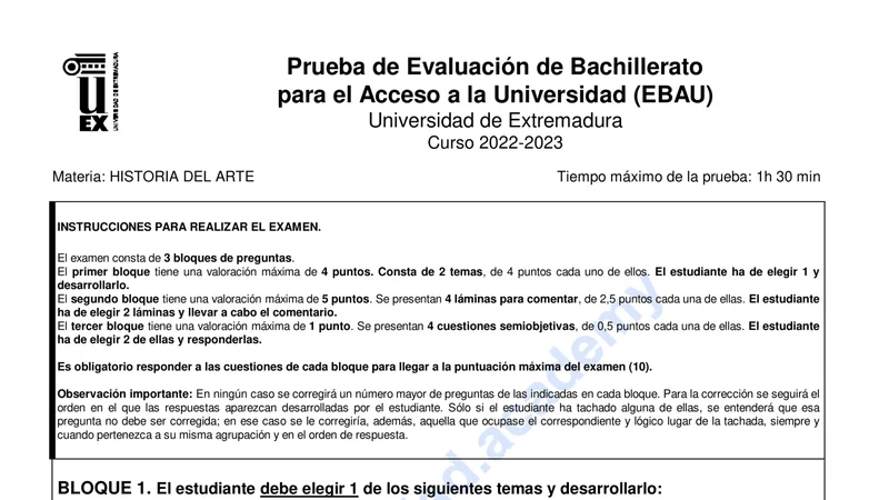 Examen PAU Historia del Arte selectividad Extremadura — Ordinaria 2023