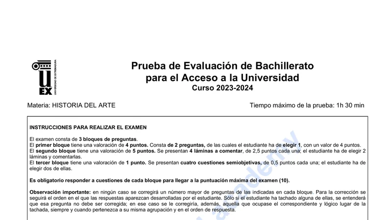 Reservar clase gratis →Examen de Historia del Arte selectividad Extremadura (Extraordinaria 2024)