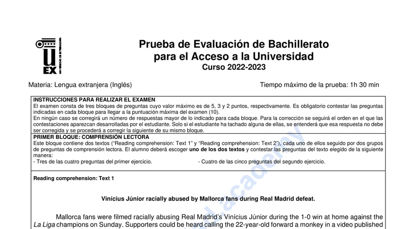 Reservar clase gratis →Examen de Inglés selectividad Extremadura (Ordinaria 2023)