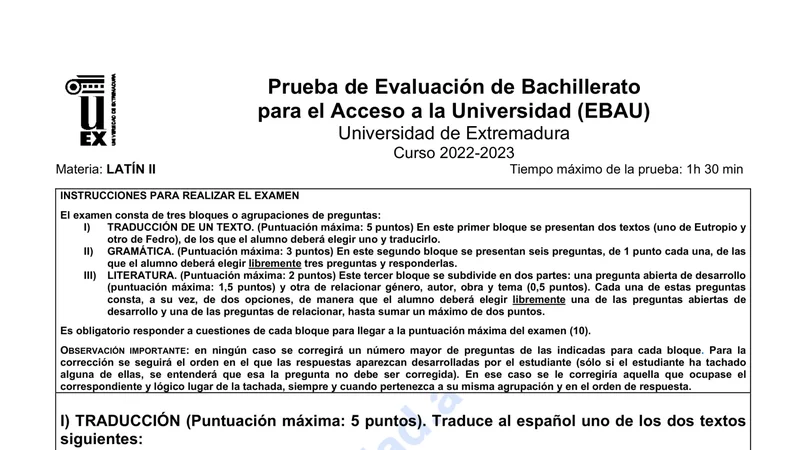 Reservar clase gratis →Examen de Latín II selectividad Extremadura (Ordinaria 2023)