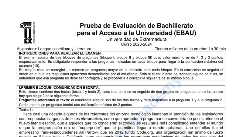 Reservar clase gratis →Examen de Lengua Castellana selectividad Extremadura (Extraordinaria 2024)