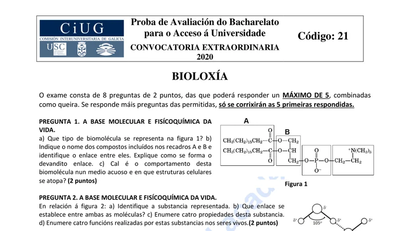 Reservar clase gratis →Examen de Biología selectividad Galicia (Extraordinaria 2020)