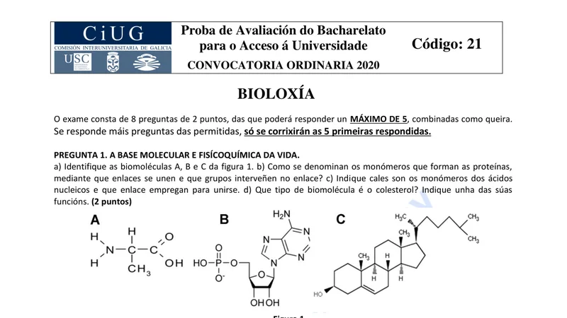 Examen PAU Biología selectividad Galicia — Ordinaria 2020