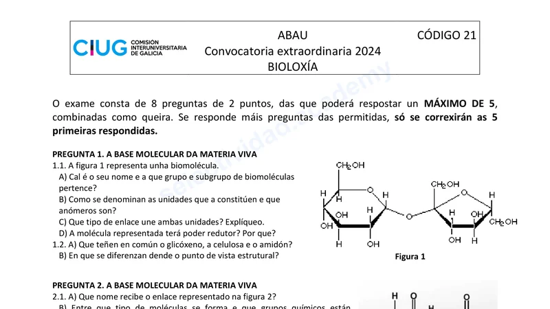 Reservar clase gratis →Examen de Biología selectividad Galicia (Extraordinaria 2024)