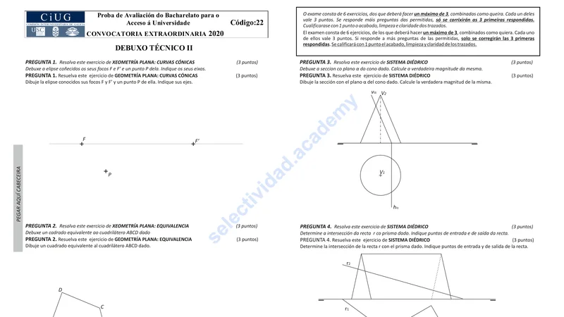 Examen de Dibujo Técnico II selectividad Galicia — Extraordinaria 2020