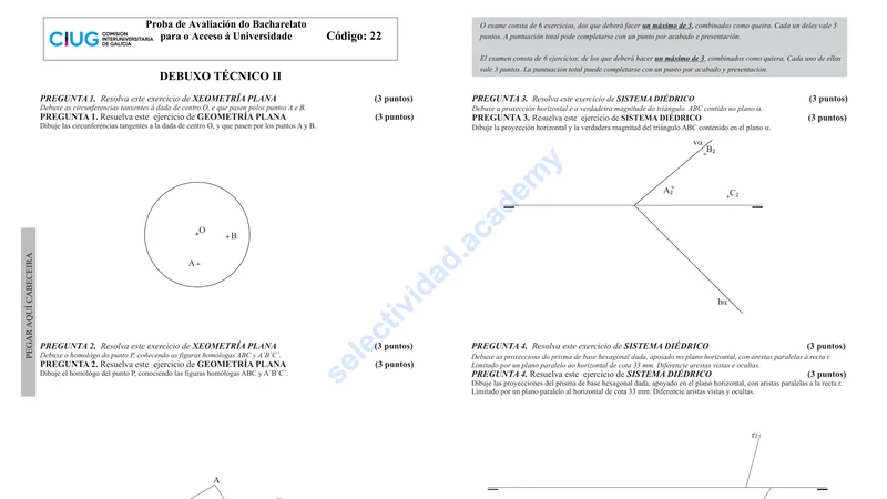 Examen de Dibujo Técnico II selectividad Galicia — Ordinaria 2021