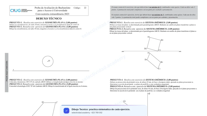 Examen de Dibujo Técnico II selectividad Galicia — Extraordinaria 2023