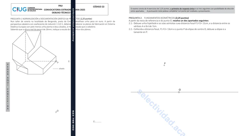Examen de Dibujo Técnico II selectividad Galicia — Extraordinaria 2025