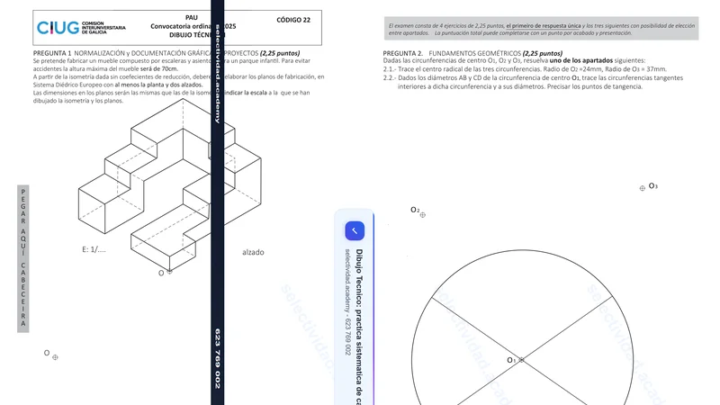 Examen de Dibujo Técnico II selectividad Galicia — Ordinaria 2025