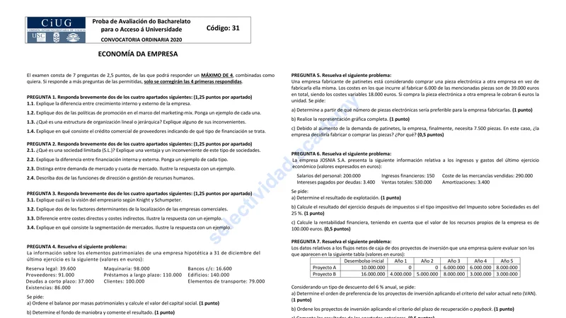 Reservar clase gratis →Examen de Economía selectividad Galicia (Ordinaria 2020)