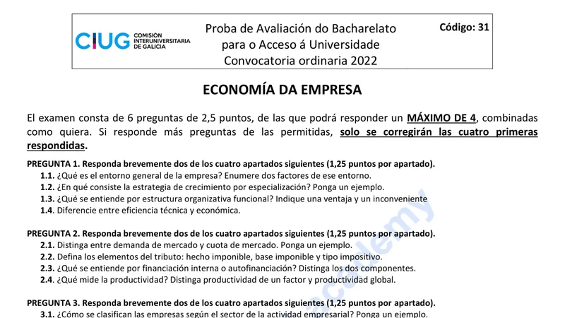 Reservar clase gratis →Examen de Economía selectividad Galicia (Ordinaria 2022)